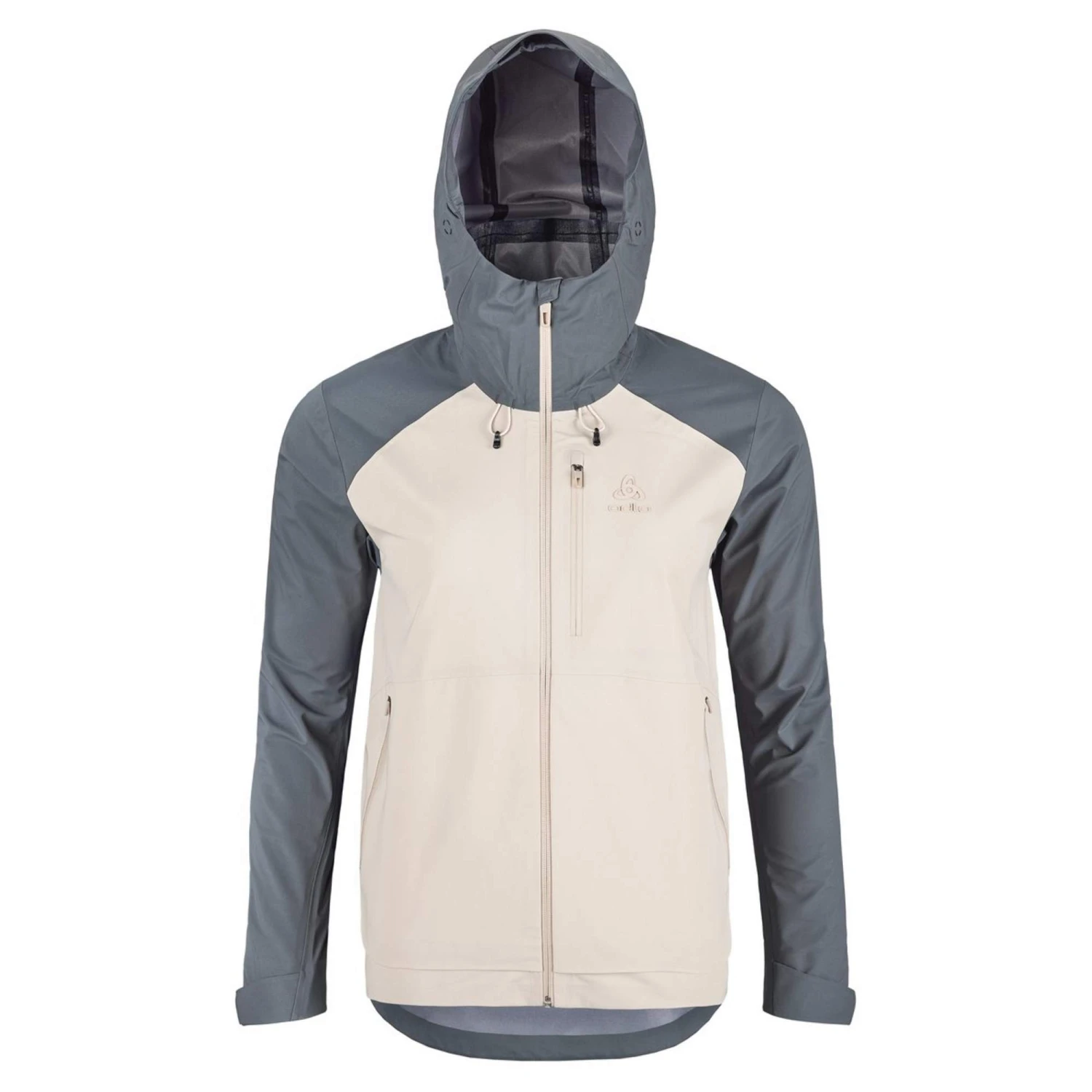 Für noch mehr Wetterschutz verfügt die Jacke über eine im Volumen regulierbare Kapuze. Gegen das Eindringen von Wind sind obendrein die Ärmelabschlüsse in der Weite einstellbar. Damit unterwegs auch kleinere Gegenstände trocken untergebracht werden können, sind die RVs der drei Taschen dauerhaft wasserabweisend. Und dank des kleinem Packmaßes der Jacke lässt sie sich platzsparend im Rucksack verstauen, wenn die Sonne am Himmel lacht.