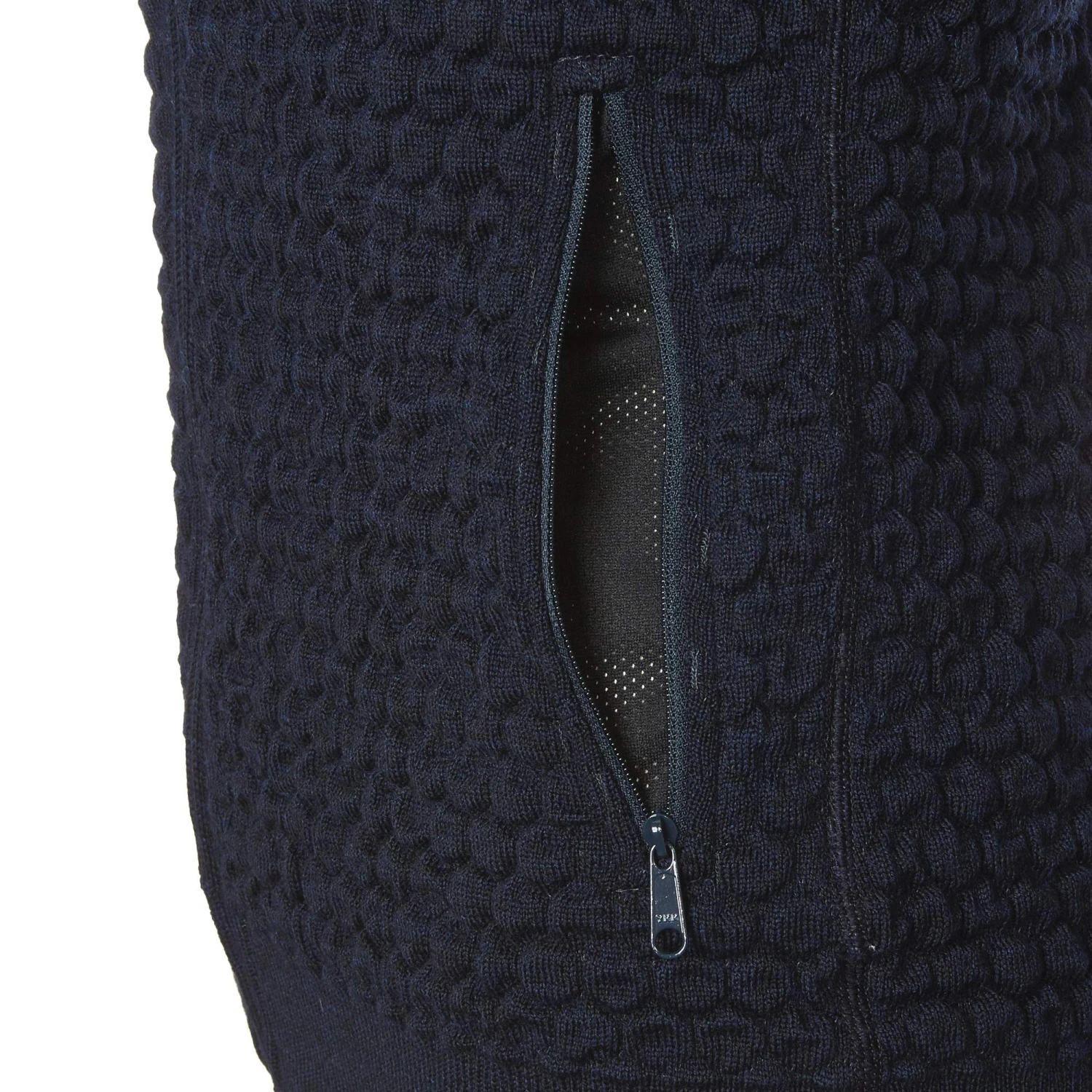Die sechseckige, leicht nach außen gerundete Struktur ist übrigens weit mehr als ein „spannendes Design“. Hier wird vom Körper erwärmte Luft „eingeschlossen“ – die Jacke wärmt dadurch bei recht geringem Gewicht besonders effektiv!